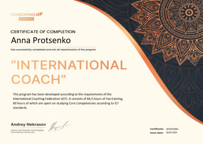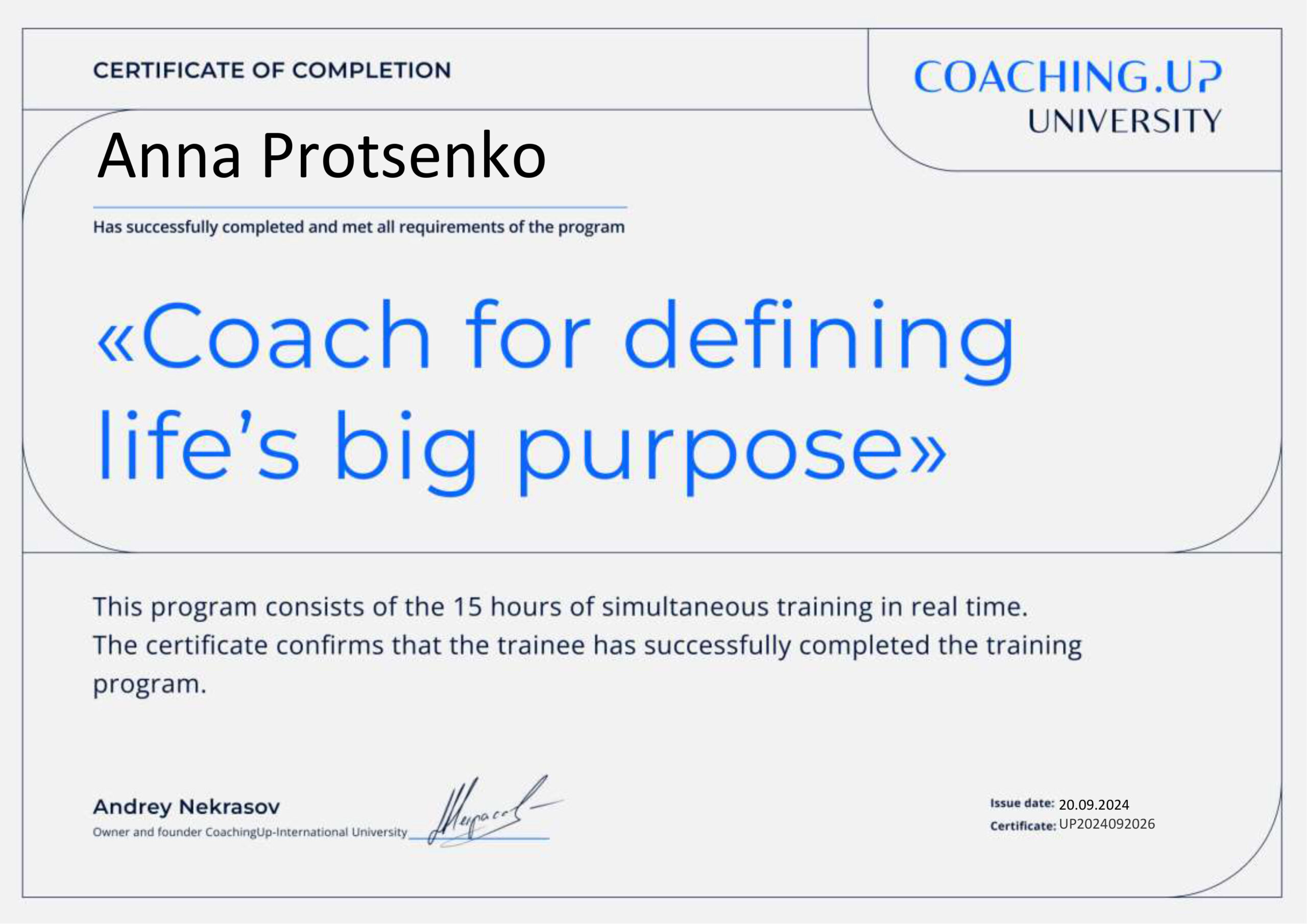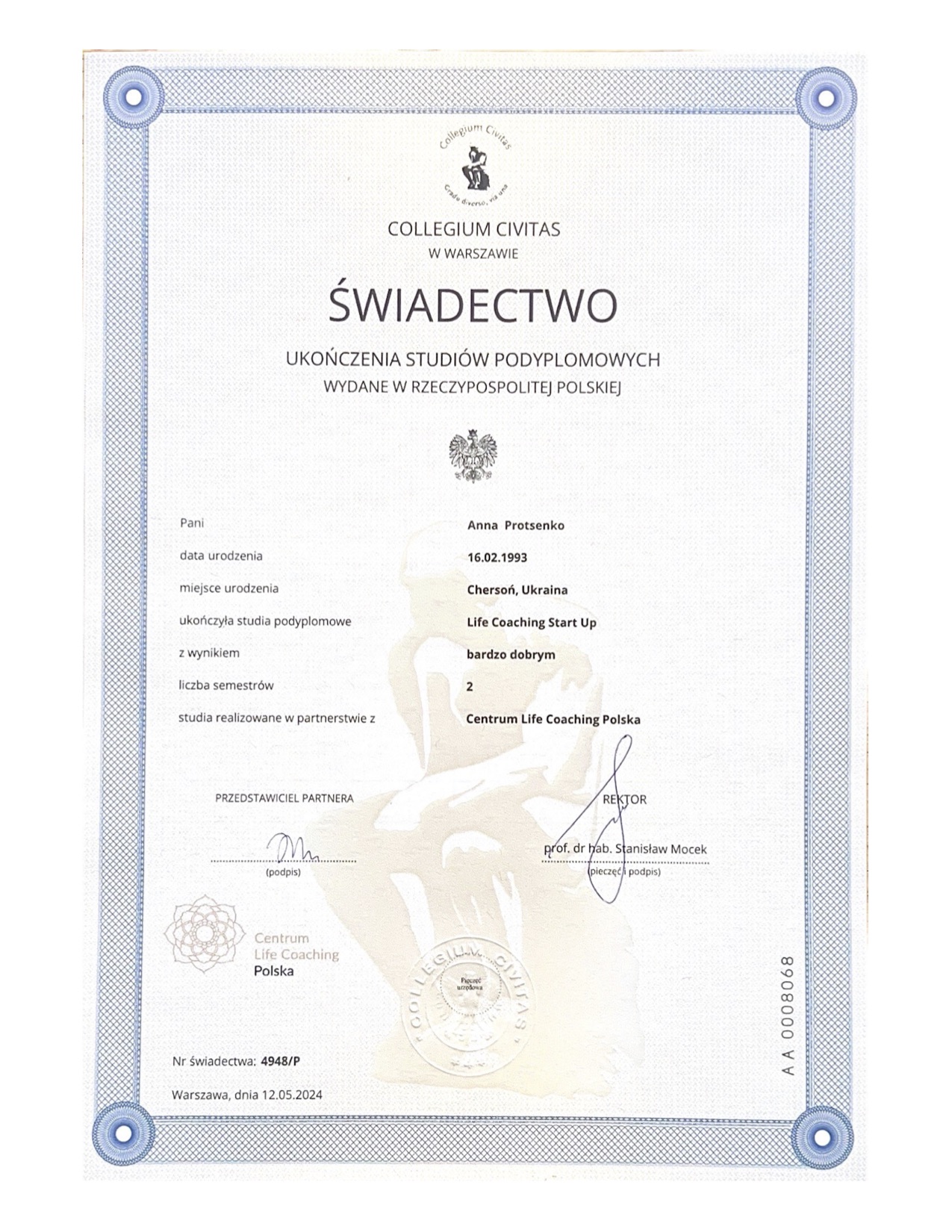 Nazywam się Ania Procenko i jestem coachem świadomych, ambitnych kobiet, które chcą nadawać sens temu, w co na co dzień wkładają energię. Pomagam budować życie po swojemu – z poczuciem sprawczości, spójności i spokoju.