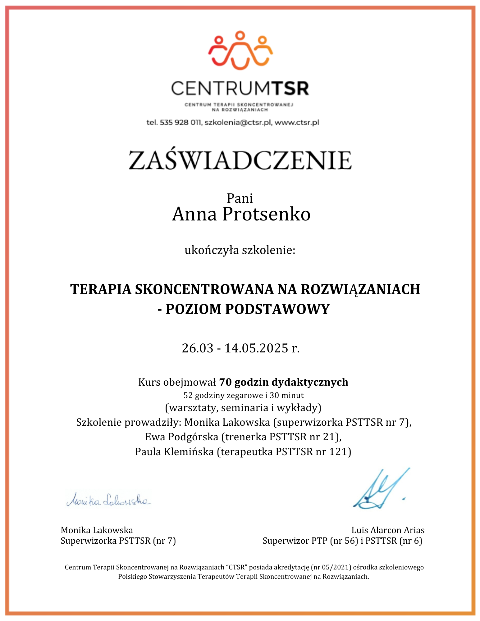 Pracuję w oparciu o sprawdzone, naukowe metody wsparcia psychologicznego.